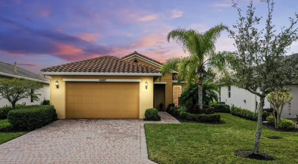 Decked out with amenities front to back, this is the one! Pulling into Vitalia's 55+ community, you'll appreciate the gated entrance, security guards, and beautifully maintained grounds. This home offers a paver driveway, tile roof, gutters, and a spacious 2 car garage. Step inside, and you'll love that this home is meticulously cared for, boasts impact windows and doors, and matching tile throughout. The builder went above and beyond with my favorite details, including coffered ceilings with crown inset and a convenient front den/office with glass front French doors. The kitchen was built for granite countertop lovers, offers an expansive center island for never ending space, has matching stainless steel GE appliances, a pantry with 6 pull-out drawers, a gorgeous stone tile backsplash, and tasteful pendant lighting. The oversized master bedroom has a large walk in closet, a coffered ceiling, and walks into your private master bathroom with dual vanity. Enjoy your serene backyard in the screened, covered patio, and if the sun is too much, there are pull down screens for your convenience. Vitalia offers 2 community pools, a state of the art clubhouse, professional management, lawn care, pest control, and loads of other great amenities. What a lifestyle!