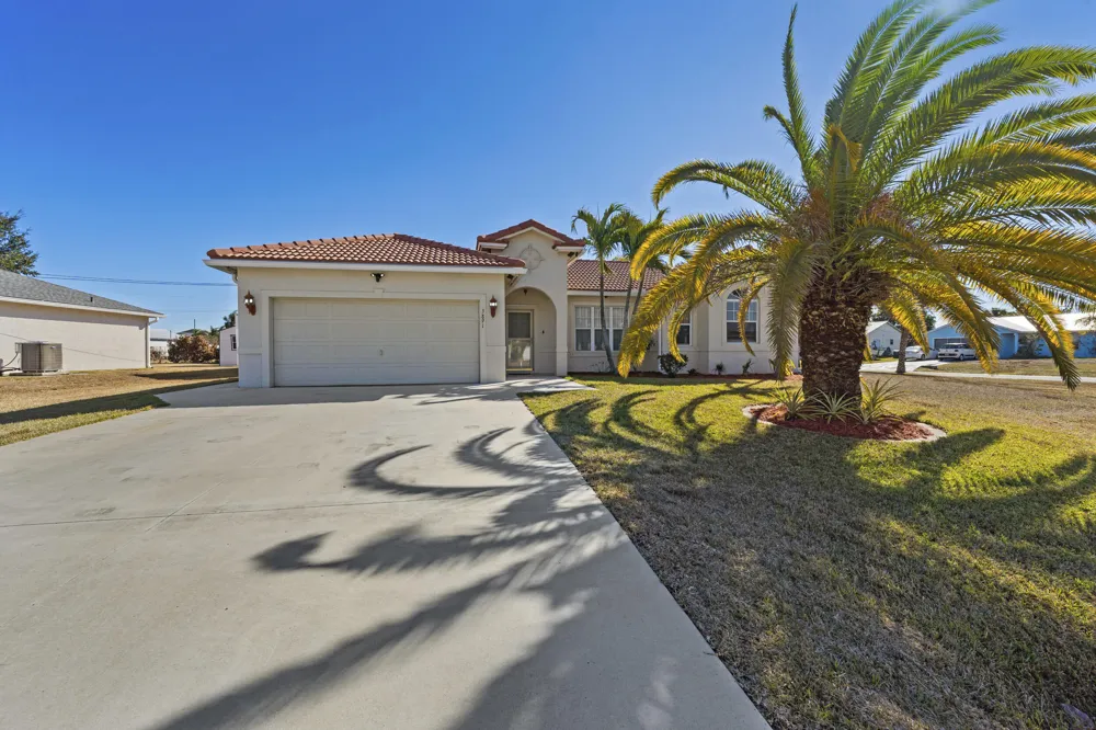 Impeccably maintained and thoughtfully updated, this stunning 4-bedroom, 3-bath, 2-car garage pool home sits on an oversized corner lot in a prime Port St. Lucie location. The backyard is a true showstopper, featuring a gorgeous heated saltwater pool and spa—perfect for entertaining, relaxing, and enjoying Florida living year-round—complete with a rescreened enclosure, extended rear patio awning, under-truss patio, and convenient cabana bath. Inside, the home offers a spacious foyer, formal living and dining rooms, and an oversized Florida/family room designed for comfortable everyday living and gatherings. The luxurious primary suite showcases elegant herringbone tile flooring, a walk-in closet, and a spa-inspired bathroom with glass shower enclosure, marble countertops, double vanities. The kitchen is beautifully appointed with Samsung appliances, an updated backsplash, and modern pendant lighting. Major upgrades provide exceptional peace of mind, including a brand-new barrel tile roof (2025), new A/C unit (2024), upgraded 200-amp electrical service (2024), and a new water heater (2024). Additional highlights include a 20' x 51' concrete driveway with new culvert, hurricane panels, hard-wired Bose speakers, security and Ring cameras, a wired shed, and underground neighborhood utilities. Ideally located near shopping, major groceries, Tradition Square, Cleveland Clinic, I-95, St. Lucie West, Mets Stadium, and the beaches, this home offers the perfect blend of luxury, comfort, and location, an ideal setting for the entire family.